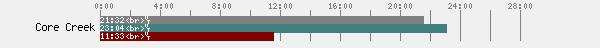 | Core Creek | Mar 06, 2022 | Yellow | 1:26:10 | 9/18 | 4.00 | 80.0 | 13 | 21:32 |