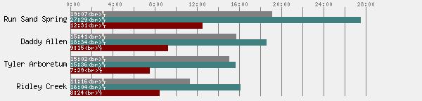 | Tyler Arboretum | Mar 22, 2015 | Yellow X | 0:45:07 | 18/41 | 3.00 | 95.0 | 11 | 15:02 |