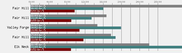 | Valley Forge | Jul 22, 2007 | Orange | 55:57 | 10/32 | 3.80 | 120.0 | 13 | 14:43 |