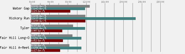 | Water Gap | May 29, 2005 | Blue | 147:21 | 15/18 | 11.60 | 550.0 | 20 | 12:42 |
