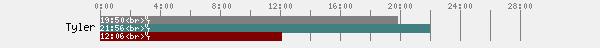 | Tyler | May 15, 2011 | White | 41:39 | 3/6 | 2.10 | 45.0 | 10 | 19:50 |