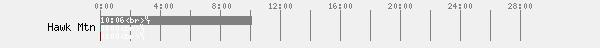 | Hawk Mtn | Mar 25, 2001 | Yellow | 26.04 | 1/18 | 2.58 | 85.0 | 13 | 10:06 |