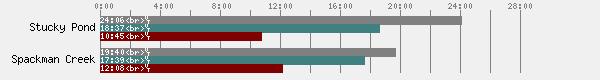 | Spackman Creek | Nov 02, 2003 | Green | 104.54 | 25/32 | 5.33 | 180.0 | 10 | 19:40 |